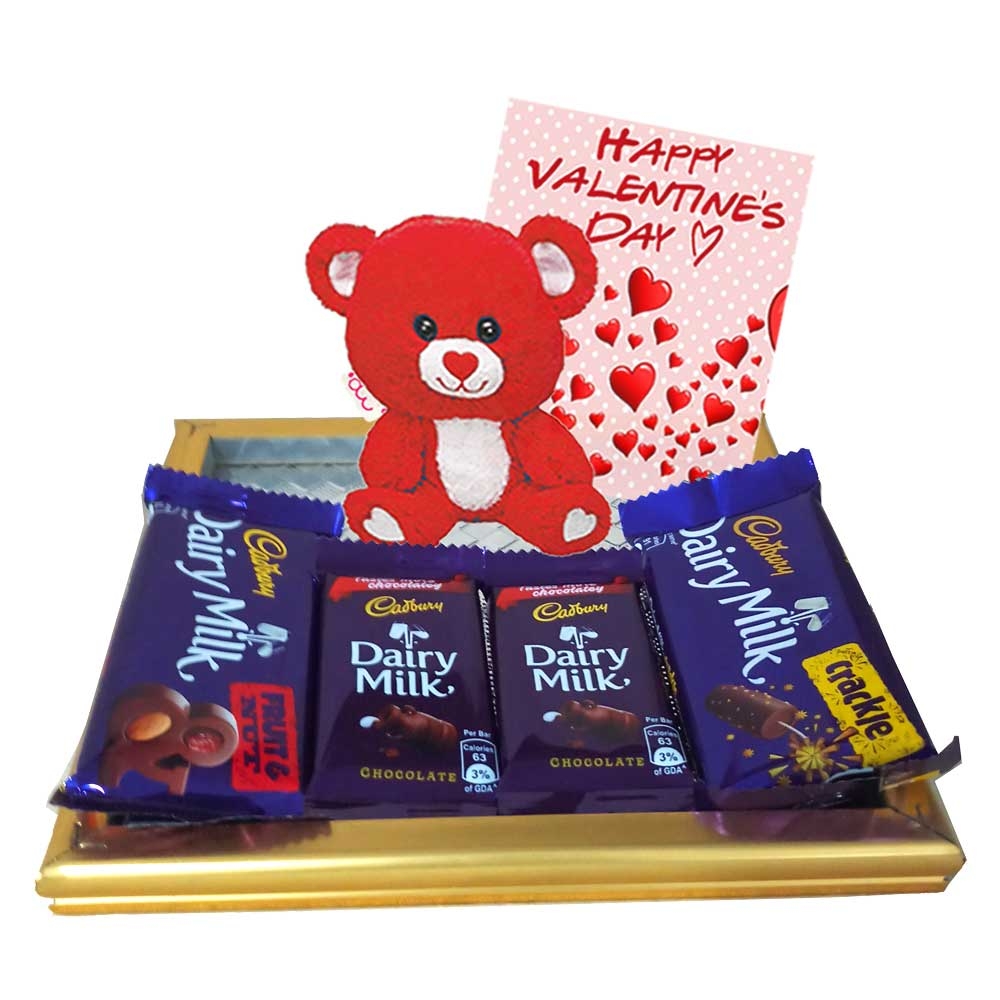 Assorted Cadbury Chocolate with Teddy bear and Greetings