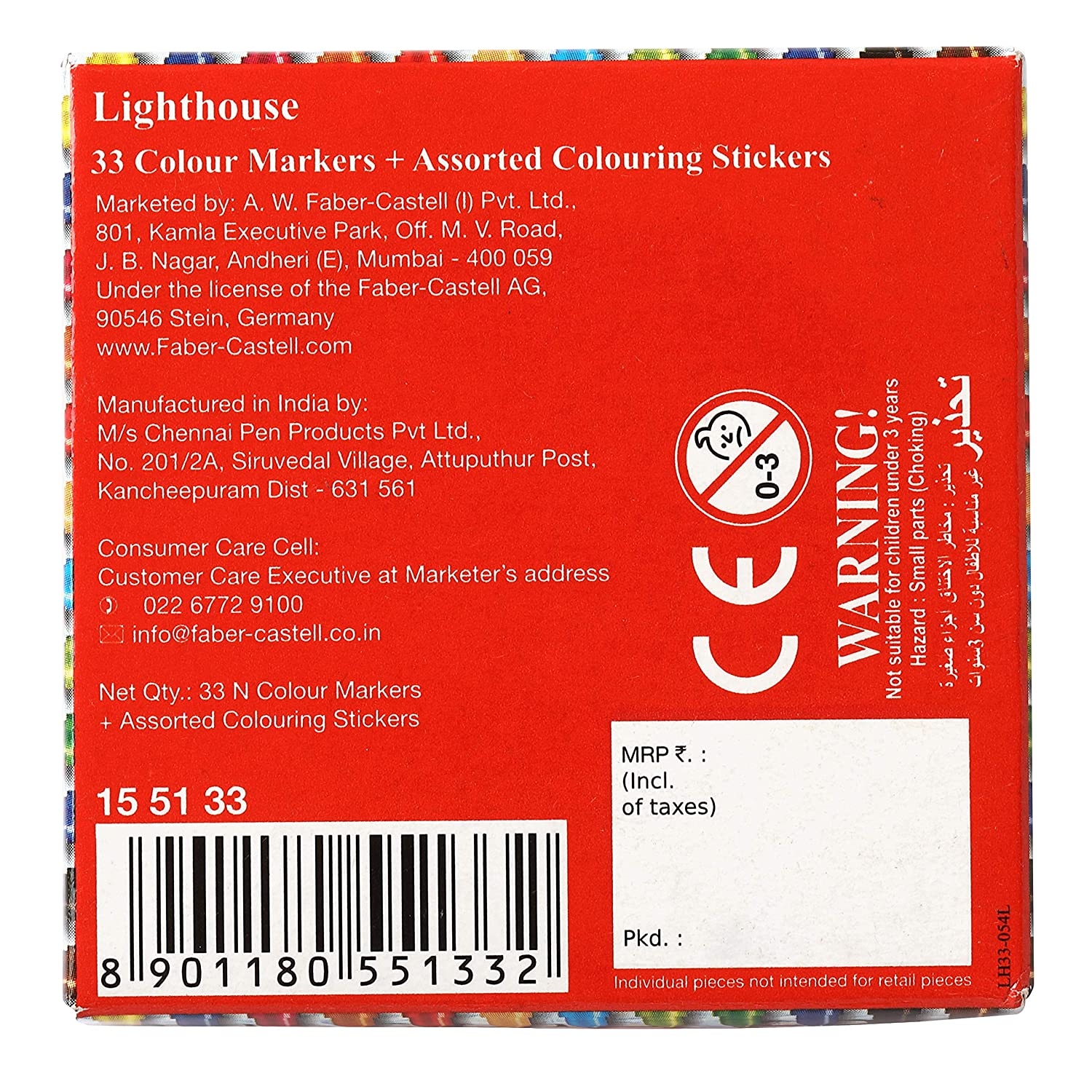 Tin contains 33 sketch pens and 2 assorted coloring sticker sheets