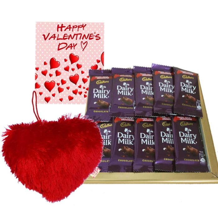 Valentines Gift with Chocolate Hamper – Dairy milk Set with Photo frame and Heart for Love