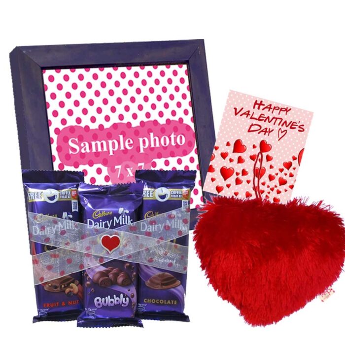 Valentine Gift with Chocolate Hamper – Dairy milk Combo with Photo frame and Heart