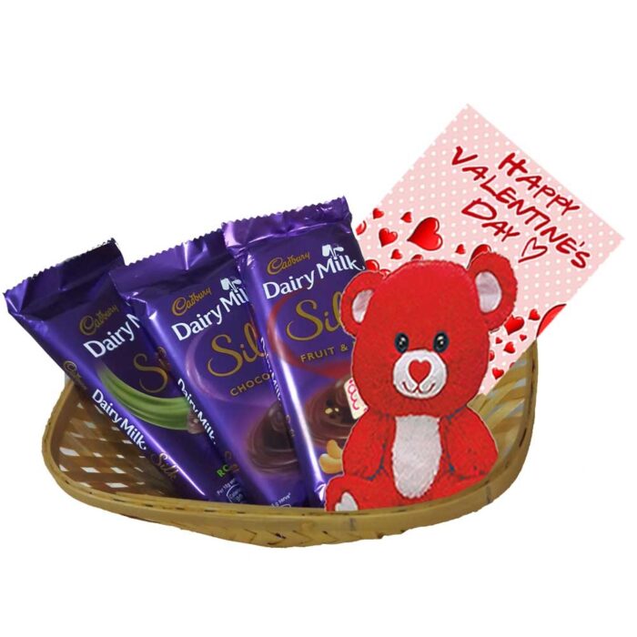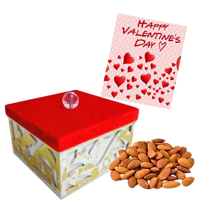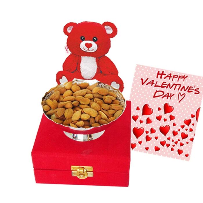 Valentine day Gift pack – Silver Bowl with Dryruits and Greetings