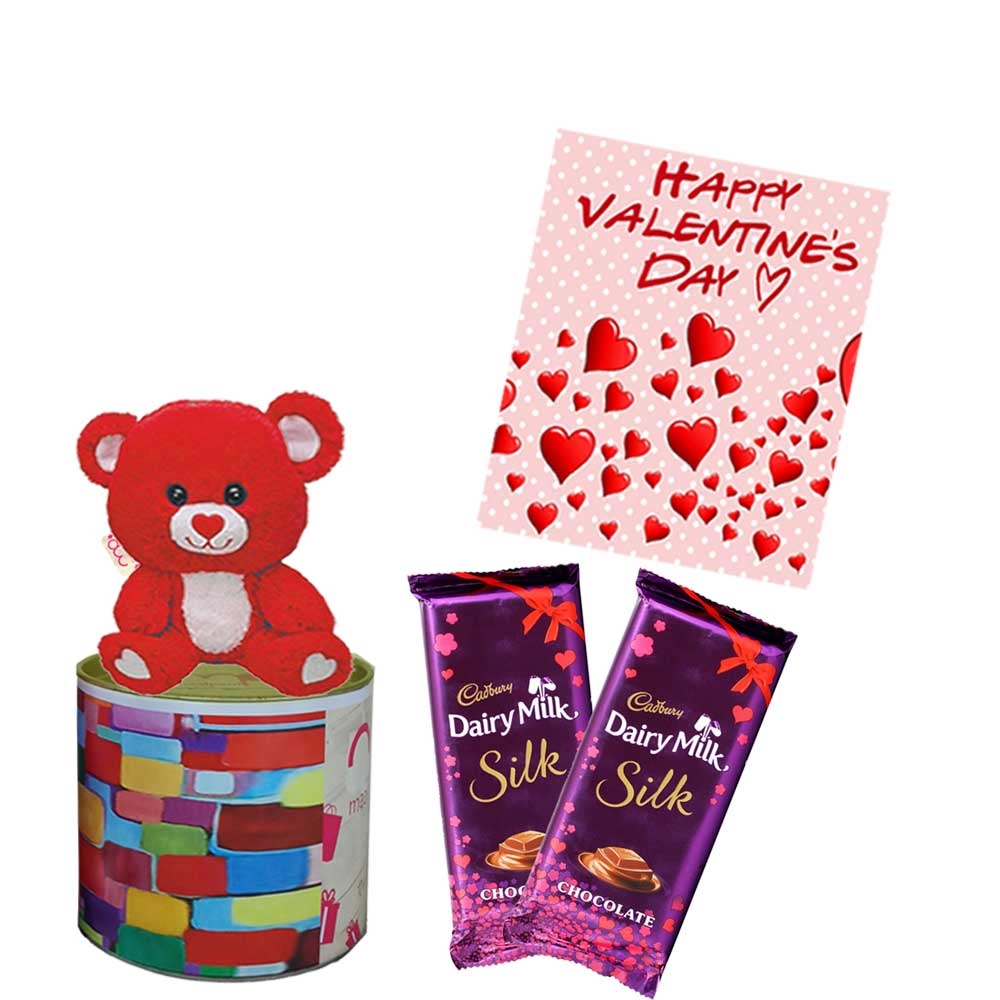 Valentine’s Day Dark Chocolate Combo Pack | heart shape Soft toy and Greetings with Chocolate Combo Pack